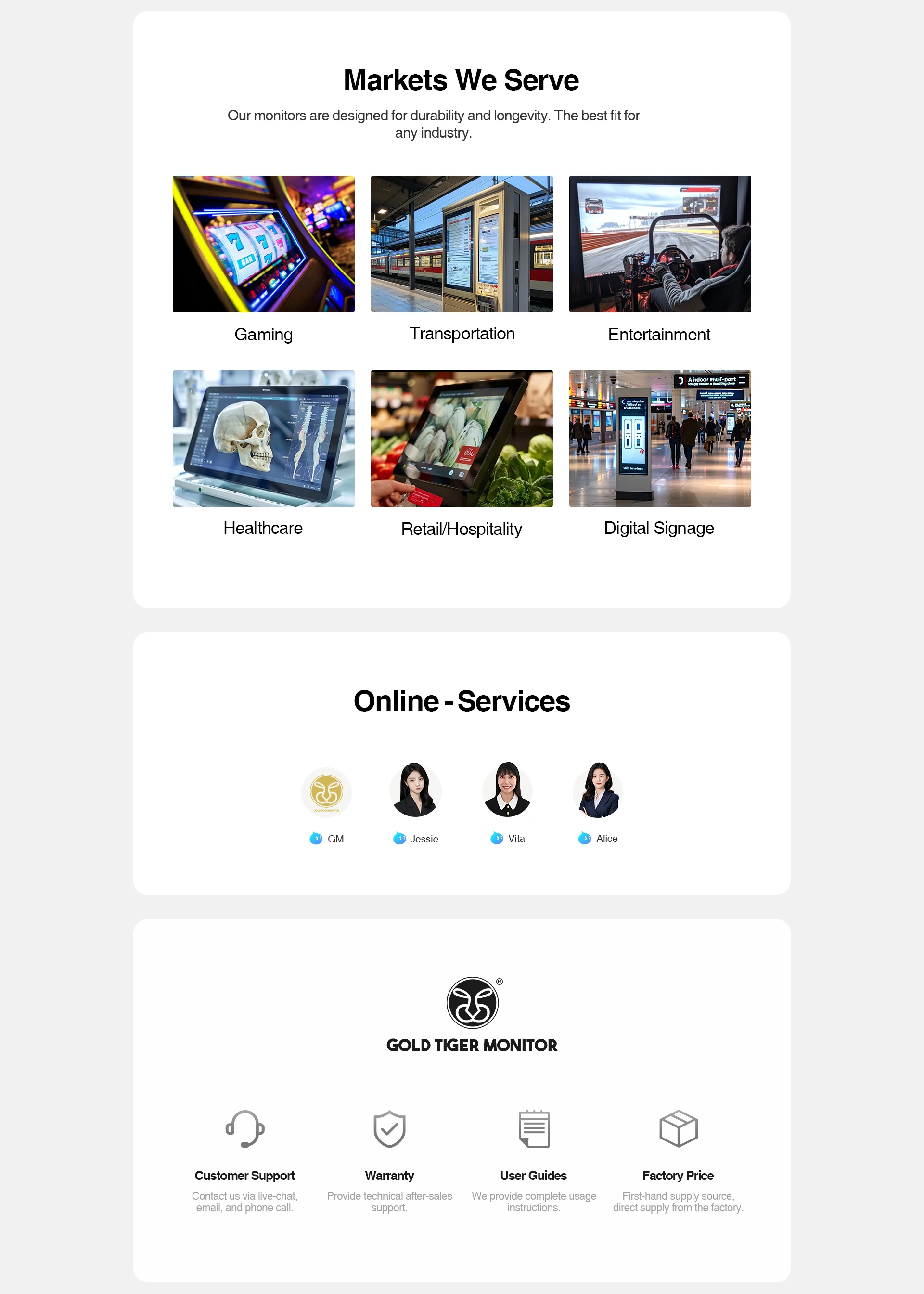 主な製品:タッチモニター、タッチスクリーン、赤外線タッチ、スキルゲームキャビネット、フィッシュゲームキャビネット